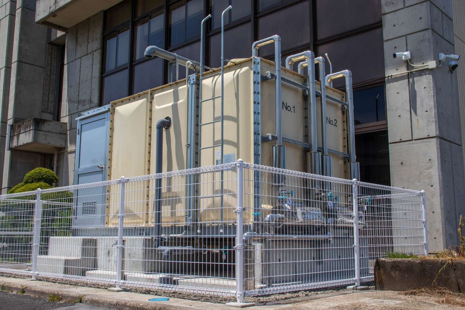 受水槽は貯水槽の一種で、ビルやマンション、工場などの大規模な建物に設置され、水道管から送られてくる水を一時的に貯めておくための水槽のことを指します。